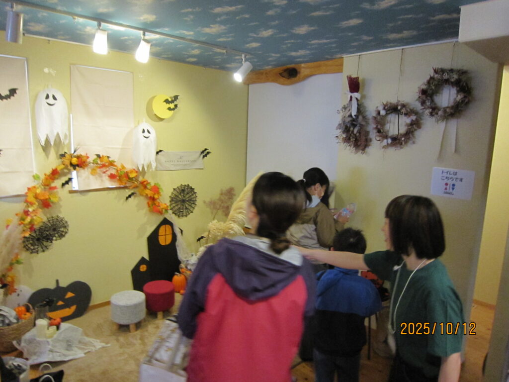 Kataraiでは、木工作品販売や手づくり小物・バックの販売や、ハロウィンフォトスペースを設けました。