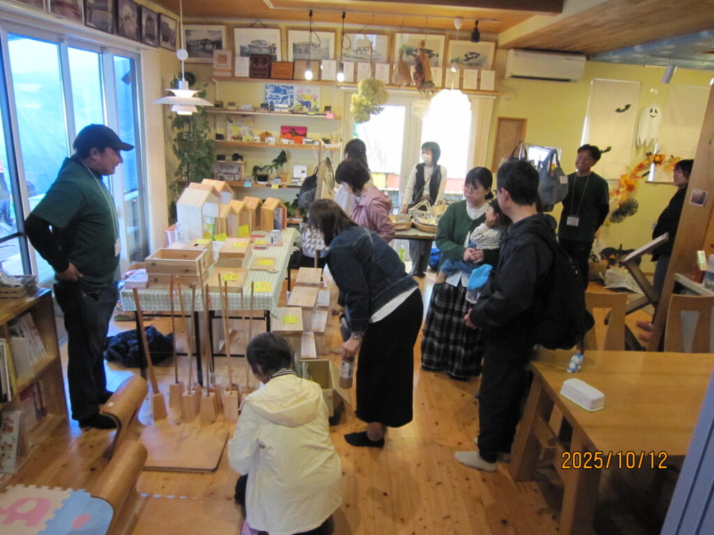 木工作品販売では、大工さんが作ってくれたまな板や小物入れなどが並び、お客様に大好評でした!