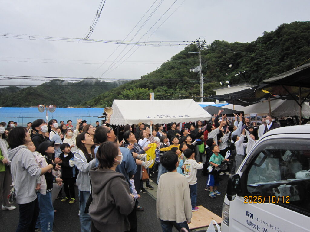 最後の一大イベントである、抽選会ともちまき&おかしまきは会場いっぱいにお客様が集まってくださいました。