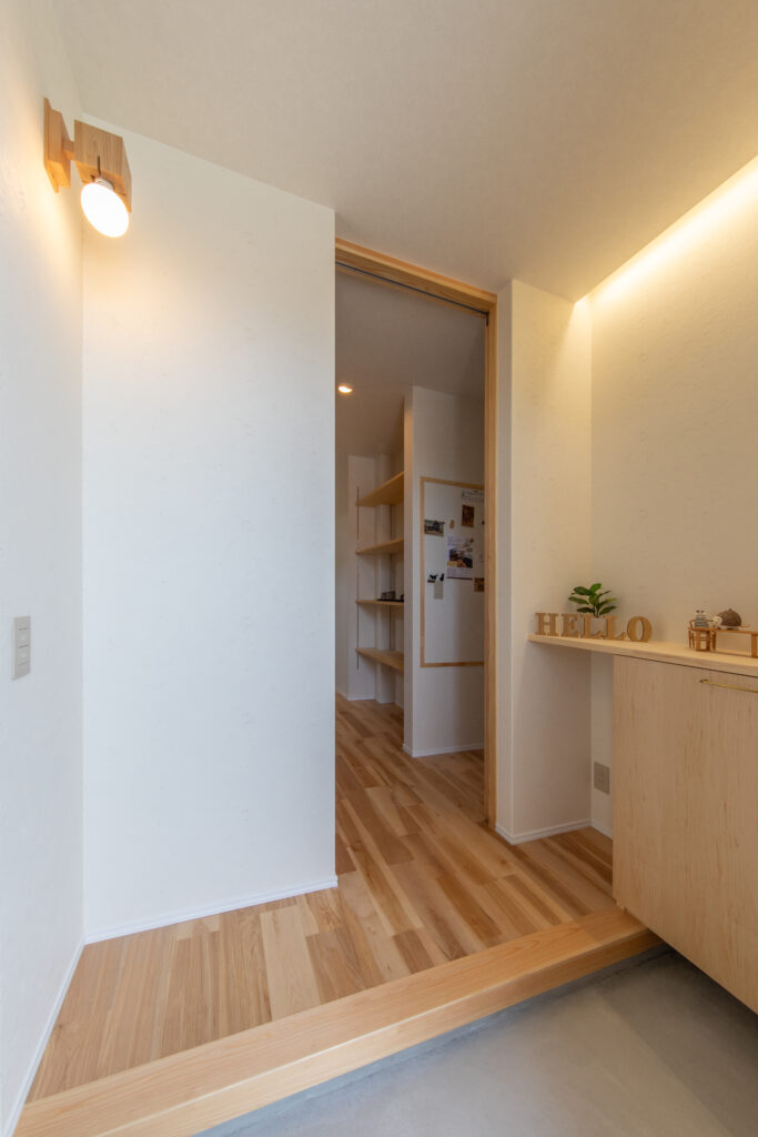 玄関からキッチンが近いことで、家事動線がスムーズです。