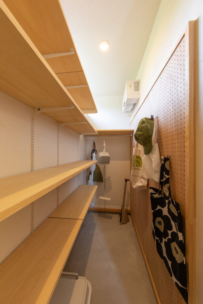 収納計画にこだわり、玄関近くに子供達のお仕度スペースを設けました。