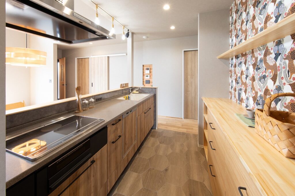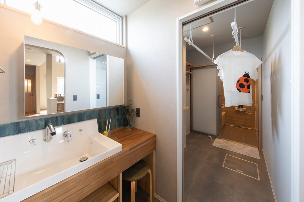 ワンフロアでの生活が出来る1階に寝室がある1階完結型。リビング・ダイニング、寝室、水回りが1階に纏まり階段を使わずに日常の生活が完結できます。